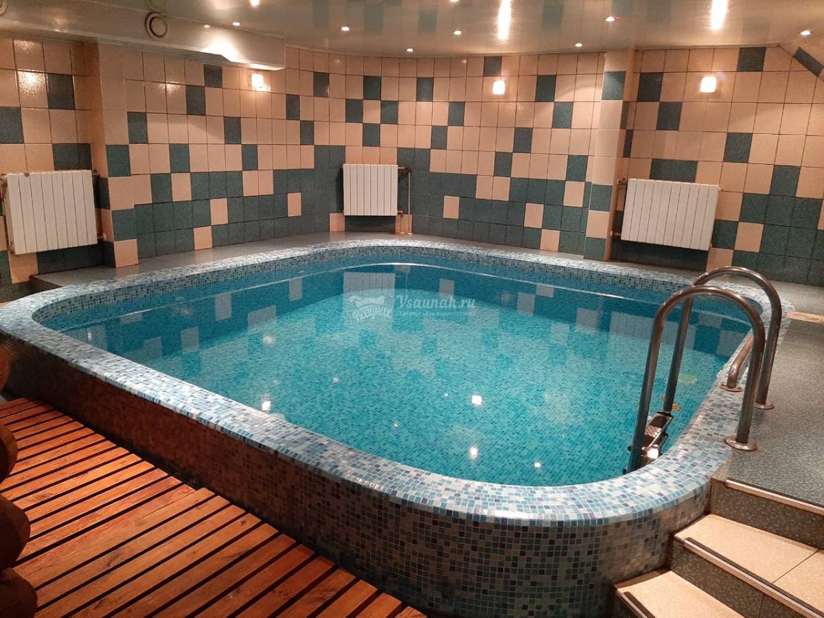 - большой бассейн с кристально чистой теплой водой, а также обливное ведро для желающих взбодриться после парения под ледяной водой;